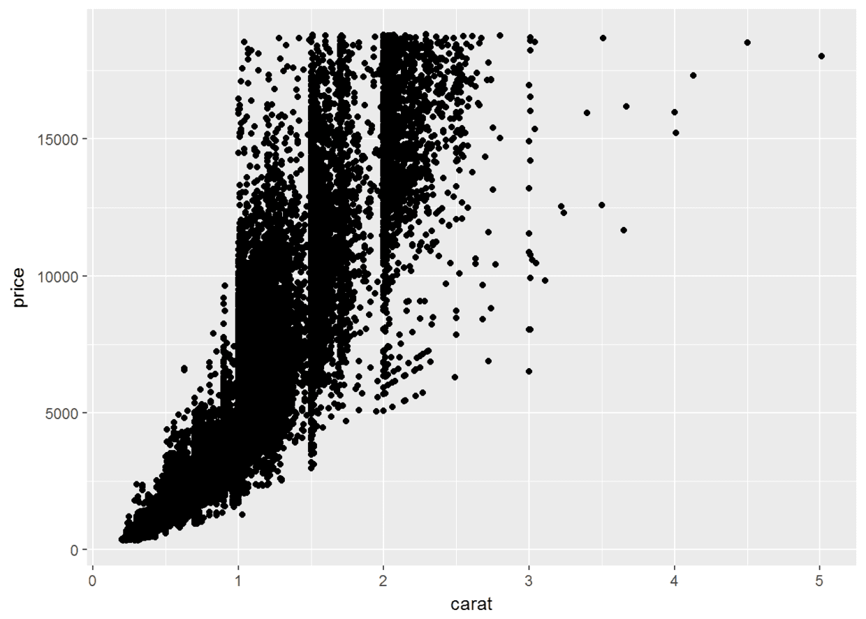 ggplot(data=diamonds, aes(x=carat, y=price))+geom_point()