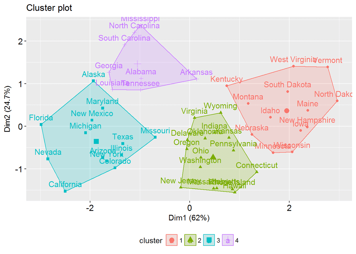 fviz_cluster(km.res, USArrests)